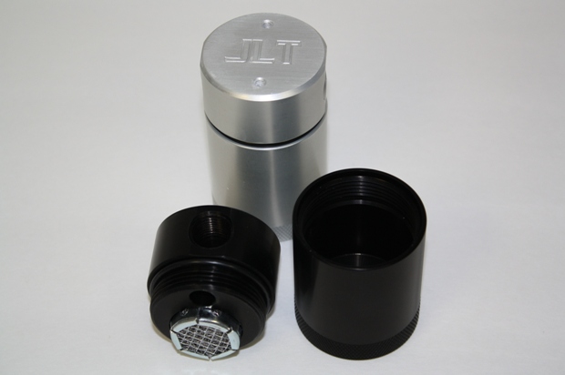 To combat this, JLT developed an oil separator designed and CNC machined from solid billet aluminum. It has a knurled tank base to allow a good grip when unscrewing to drain the accumulated oil and it has an O ring seal installed to prevent any leaks under pressure. All the JLT Oil seperators have a metal mesh Filter element. This element acts like a distiller and collects the vapors that cool and turn into droplets of oil that then collect in the bottom of the collector tank.
