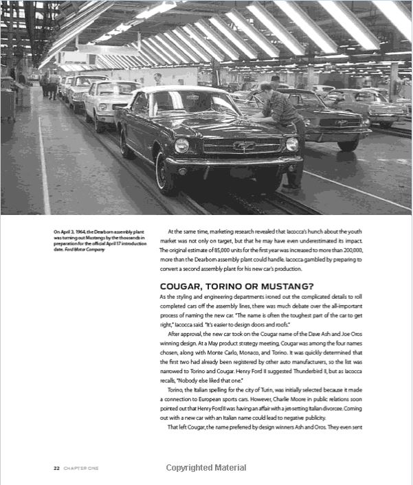 C.Waterman: - Five Stars - I recommend this book to every Mustang enthusiast, even though you might know it all already. It puts it together in a beautiful package, worthy of 50 years of Mustang. If you aren't an enthusiast, but want to know about the history of Ford's incredible Mustang, this is the best place to start, and may be all you ever need to read to understand how the Mustang was born, and how it has survived 50 years and running!