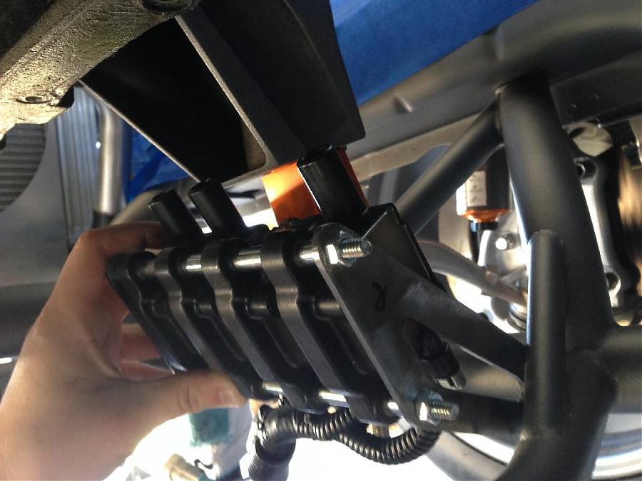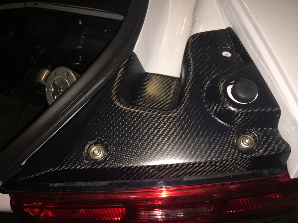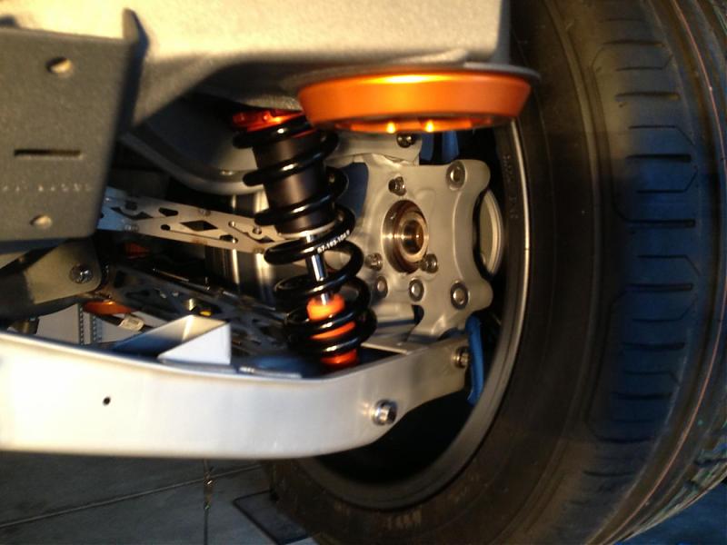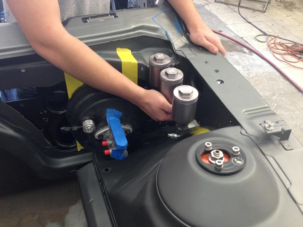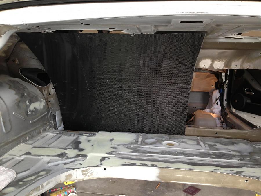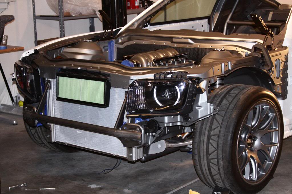 Moving on to the Camaro's chassis, there is so much detail in every single part. Every hole that was no longer used in the engine bay was filled in and covered. The firewall was covered with a custom carbon fiber plate. A similar piece was made to replace the heavy factory steel that separated the back seat from the trunk. In the trunk, the spare tire well was cut out to shave more weight, and replaced by a custom made flat panel that was painted with the G5.R project logo. The floor was completely smoothed out, too, with some pretty nifty steel “floor mats.” Since this is to be a serious track car, like the Camaro Z/28 on steroids, a roll cage was also added to the interior, which will be integrated with the headliner. A fire suppression system complements it nicely. Underneath, the floorpan was completely covered in a gold heatshield. The roof skin was completely removed, which will be replaced by carbon fiber. Carbon is used throughout the body, with the Moreno family’s own brand of components. Custom tubular front and rear bumper supports replace the heavy factory pieces, as do tubular engine and differential cradles. While originally some off-the-shelf parts were used on the suspension, every piece has been replaced with custom made components designed by the Morenos. It’s amazing what a couple of engineering students can do. The shocks are even custom-valved Penskes.