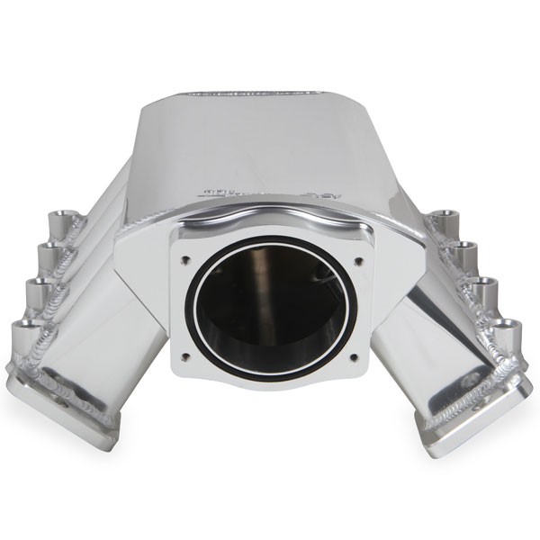Holley Sniper Low Profile Sheetmetal Intakes are fabricated from durable 1/8" thick aluminum and are precision tig welded for maximum strength. This manifold features a bead blasted silver anodized finish. Countless hours were spent tuning the runners to come up with the proper length and taper to ensure optimum performance and equal distribution to all 8 cylinders.Simplifies Engine Swaps