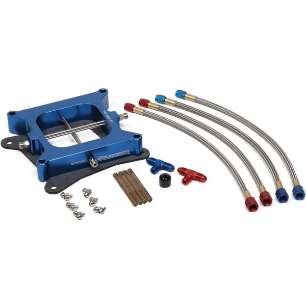 NOS Crosshair Injector plates incorporate a low profile design and are constructed of billet aluminum with a durable blue finish. They are designed to bolt onto a squarebore intake manifold. Included are all applicable gaskets, studs, jets and plumbing.